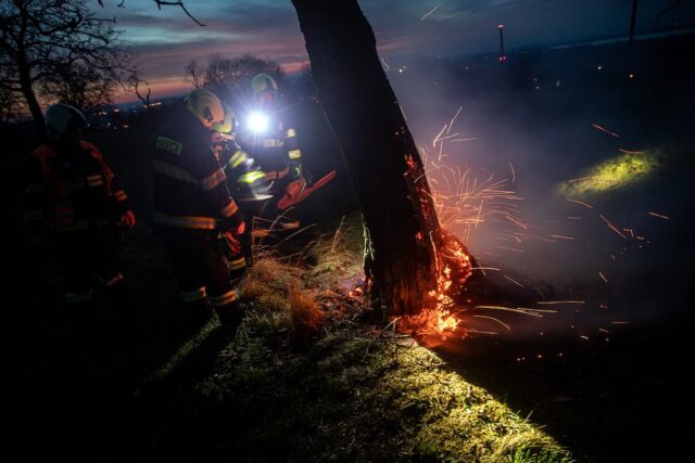 Deset minut před půl pátou přispěchali profesionální hasiči z Dobrušky a dobrovolná jednotka Nové Město nad Metují k požáru vykotlaného stromu, který zahořel po zbytku zábavní pyrotechniky. K požáru došlo v Novém Městě nad Metují v části Vrchoviny. Jednotky strom uhasily pomocí vody z vaků a pokáceli ho.