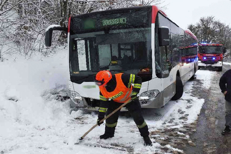V neděli jihomoravští hasiči zasahovali především u dopravních nehod. Evidovali celkem 12 událostí a čtyři zraněné osoby. Na Blanensku vyprostili zapadlé autobusy. V neděli po jedenácté hodině u Krasové linkový autobus částečně sjel mimo komunikaci. Hasiči zajistili místo a odkopání zeminy, aby mohli cestující vystoupit. Poté byl autobus vytažen cisternou HZS Blansko.