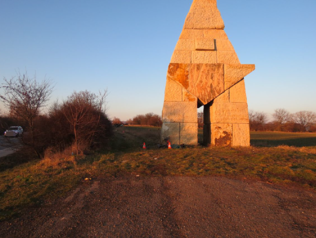 „Řidič jedoucí po silnici I/35 ve směru od Milovic na Hořice zřejmě nepřizpůsobil rychlost své jízdy, vyjel vpravo mimo komunikaci, kde pravou přední částí narazil do sochy Obřího trpaslíka, od které se odrazil a opakovaně otočil přes střechu,“ komentuje nehodu policejní mluvčí Eliška Pospíšilová.