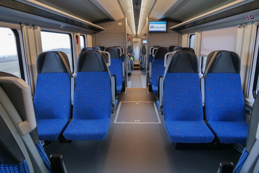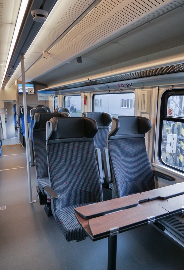 V pátek proběhla první zákaznická prohlídka nové motorové jednotky od na zkušebním okruhu ve Velimi. První dojmy osazenstva byly skvělé. Interiér prostorný, sedačky pohodlné. V první třídě paráda.