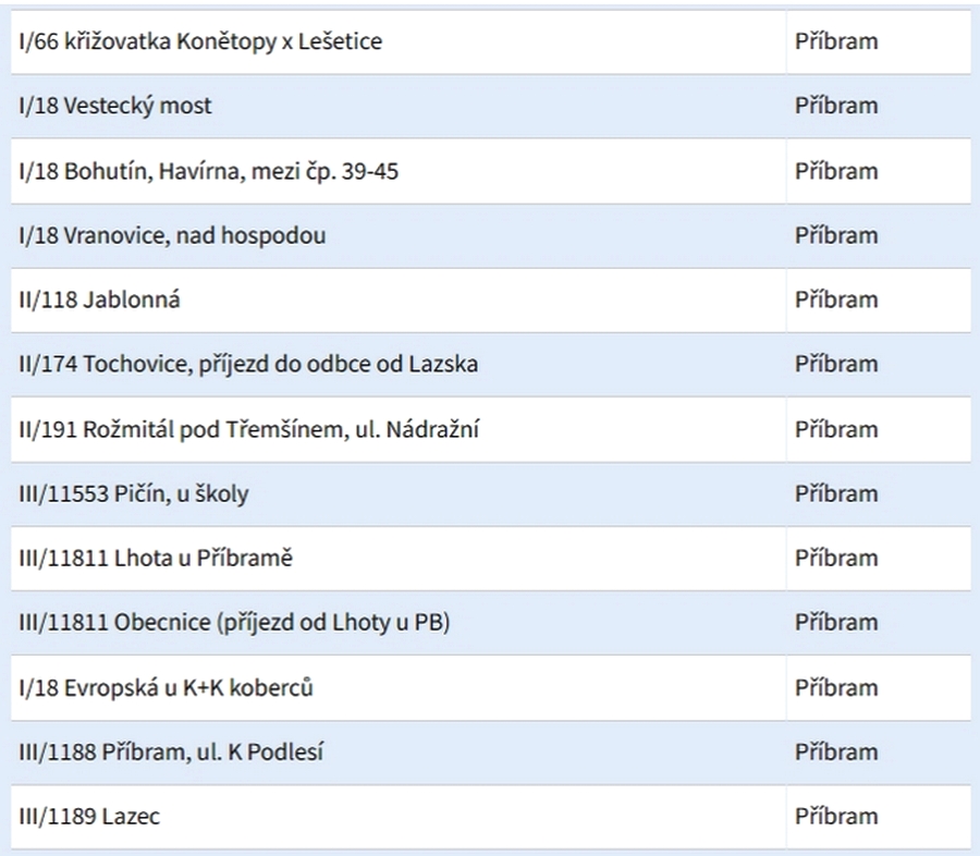 STŘEDOČESKÝ KRAJ – Pokud nechcete riskovat nehodu ani pokutu, je nejlepší dodržovat dopravní předpisy a správně přizpůsobit rychlost. Chcete-li ale vědět, kde budou policisté stát a měřit, přinášíme  přehledný, abecední seznam míst podle okresů.