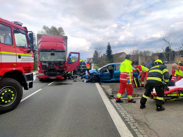 „V osobním voze došlo ke zranění jedné osoby, ta už byla při příjezdu jednotek venku a do péče si ji převzala ZZS. Hasiči provedli na místě protipožární opatření a zasypali unikající provozní kapaliny,“ říká mluvčí hasičů Martina Götzová.