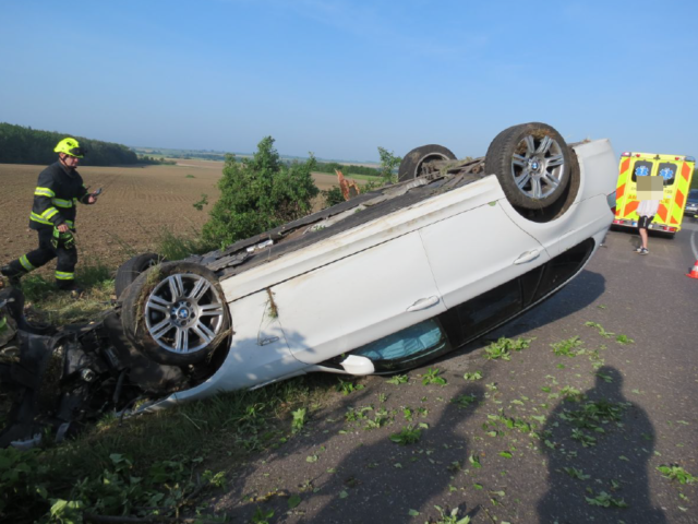 Zřejmě se nevěnovala řízení a skončila s bavorákem na střeše