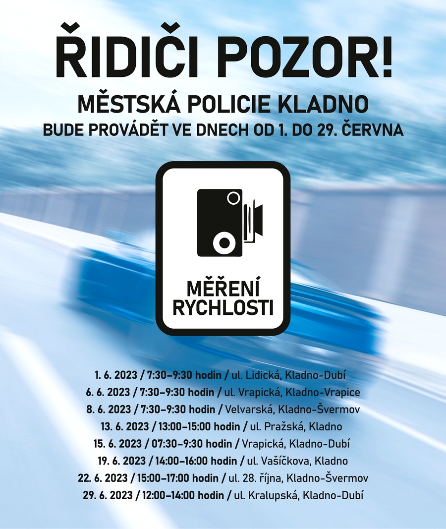 Nahlédněte do rozpisu míst a termínů měření rychlosti, jak je zveřejnila Městská policie Kladno  ↓