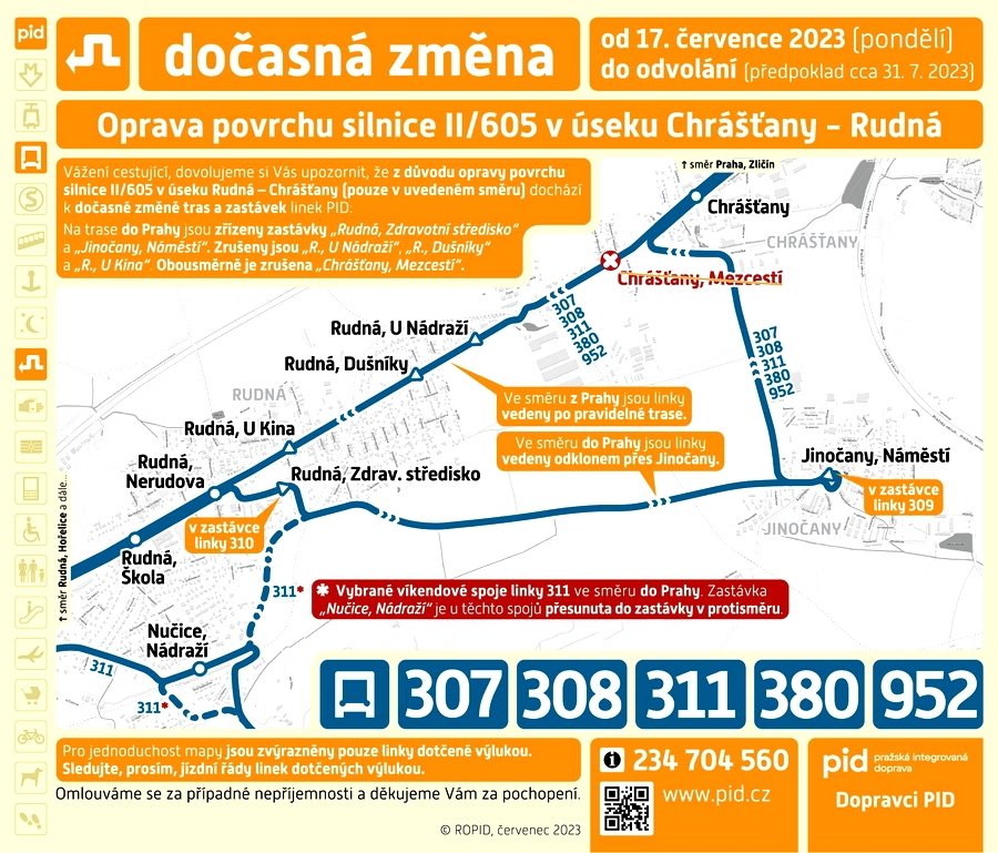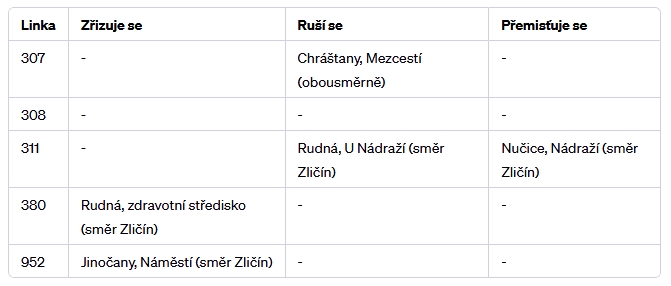 Změny se dotknou těchto linek 307, 308, 311, 380, 952