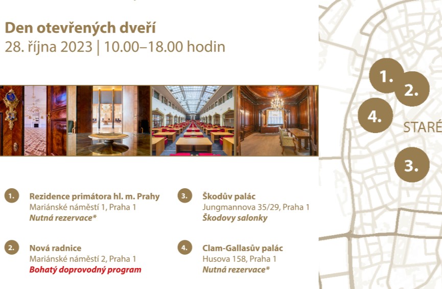 Navštivte v Den vzniku samostatného československého státu Rezidenci primátora, Clam-Gallasův palác, Škodovy salonky a Novou radnici. V letošním roce se bude opět konat den otevřených dveří pražského magistrátu ve svátek 28. října, kdy budou od 10:00 do 18:00 hodin otevřeny různé budovy pražského magistrátu pro veřejnost.