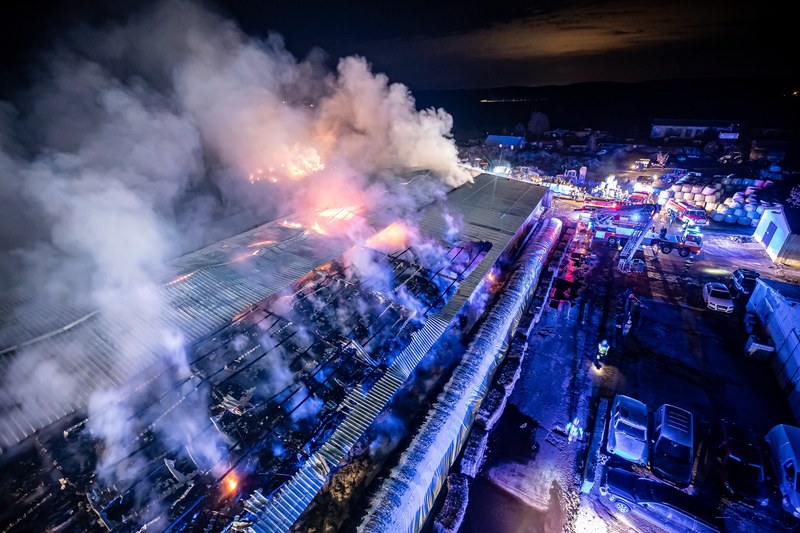 „Jednotky nasadily několik vodních proudů, včetně jednoho z výškové techniky. Před 16. hodinou byla ohlášena lokalizace požáru, postupně se pomocí manipulátorů vyváží sláma, která se dohašuje mimo zasažený objekt a ve spolupráci s místními pracovníky se vyváděl ven ustájený dobytek,“ říká mluvčí hasičů Martina Götzová.