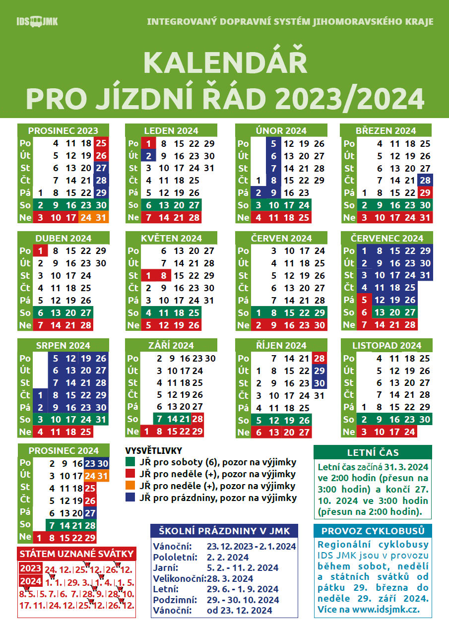 Přelom dopravního roku 2023/2024 bude z hlediska změn v dopravě klidnějším. Od neděle 10. prosince nedojde k velkým změnám v jízdních řádech, neplánují se ani změny cen jízdného. Nové jízdní řády linek IDS JMK platné od neděle jsou uveřejněny na webu www.idsjmk.cz. Vyhledávač spojení IDS JMK zobrazuje spoje zatím do 23. prosince. Přehled změn naleznete zde. Zejména pro cestující z Blanenska, Hodonínska a Znojemska jsou tam dobré zprávy. Spolu se stávajícím jízdním řádem má skončit i téměř rok trvající omezení provozu na mostě přes Svratku v prostoru Hlavního nádraží, kvůli němuž jezdí většina vlaků od obce Zastávky na brněnské Dolní nádraží. Jízdní řády jsou připraveny tak, že se S4 od 10. prosince vrací na Hlavní nádraží.