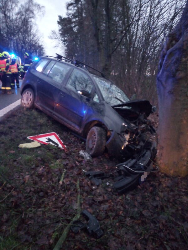 K dalšímu zásahu došlo v Novém Městě nad Metují krátce po půl čtvrté odpoledne. Řidič osobního vozidla havaroval do stromu na silnici č. I/14 v křižovatce u odbočky na obec Bražec. Profesionální hasiči Dobruška a jednotka dobrovolných hasičů Nové Město nad Metují na místě provedli protipožární opatření a zabezpečili vozidlo proti úniku provozních kapalin. Zraněnou osobu si vzala do péče zdravotnická záchranná služby. Provoz musel být byl řízen kyvadlově.