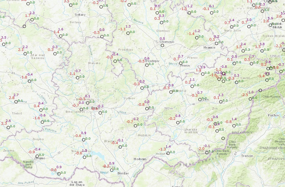Podle ČHMÚ zejména v oblasti jižní Moravy a jižní Vysočiny spadlo za posledních 12 hodin i kolem 10 mm mrznoucích srážek. Na řadě míst Moravy ledovka přetrvává i v úterý. Teploty jsou pořád kolem 0°C . Ledovka tak může být lokálně opravdu výrazná. S nastupující ranní dopravní špičkou přibývala oznámení o obtížně sjízdných, případně nesjízdných komunikacích. Jednalo se převážně o vedlejší komunikace, případně silnice nižších tříd. Množila se rovněž oznámení o kolizích a nehodách. „Dálnice na jihu Moravy jsou chemicky ošetřené, bez ledovky a sjízdné. Stejně tak jsou s opatrností sjízdné hlavní silniční tahy,“ dodal Malášek.