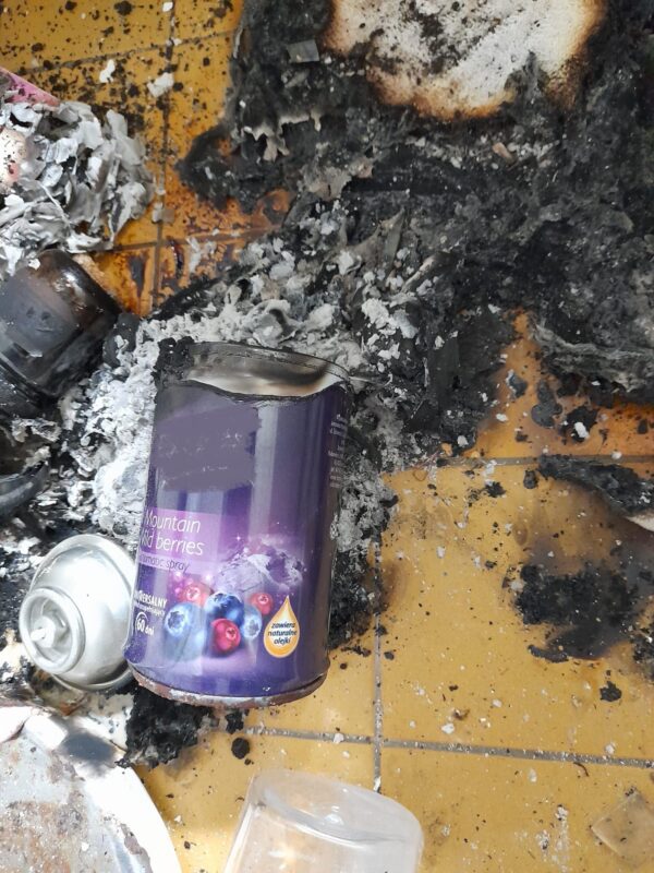 „Vše vypadalo jako klasický výbuch spreje, způsobený sálavým teplem přímotopu a následné odhoření materiálů na zemi koupelny (část kobercové předložky, ručník a toaletní papír). Ale vyšetřovatelům neunikne žádný detail. Při ohledání požářiště zjistili, že vše bylo naopak a výbuch nastal až působením drobného požáru ručníku, který byl zavěšen nad přímotopným tělesem. Po jeho sesunutí na tepelný zdroj (zapnutý na maximální stupeň) došlo ke vznícení a pádu na zem. Tam dokázal tepelně ovlivnit nádobu spreje až k jejímu fyzikálnímu výbuchu,“ sděluje mluvčí hasičů Martina Götzová.