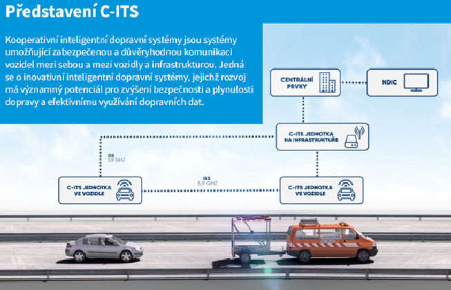 Kooperativní dopravní systém C-ITS zprostředkovává přímou komunikaci mezi jednotlivými vozidly i komunikaci mezi vozidly a řídícími či informačními centry. Přenos dat je zajištěn prostřednictvím C-ITS jednotek umístěných na dálnicích nebo prostřednictvím mobilních sítí. Zavedený systém zprostředkovává informaci řidičům, například varování před pracemi na silnici, stojícími či pomalu jedoucími vozidly či před přibližujícím se záchranářským vozidlem. C-ITS umožňují zabezpečenou a důvěryhodnou komunikaci vozidel mezi sebou a mezi vozidly a infrastrukturou. Jedná se o inovativní inteligentní dopravní systém, jehož rozvoj má významně zvýšit bezpečnost a plynulost dopravy a efektivně využívat dopravních dat.