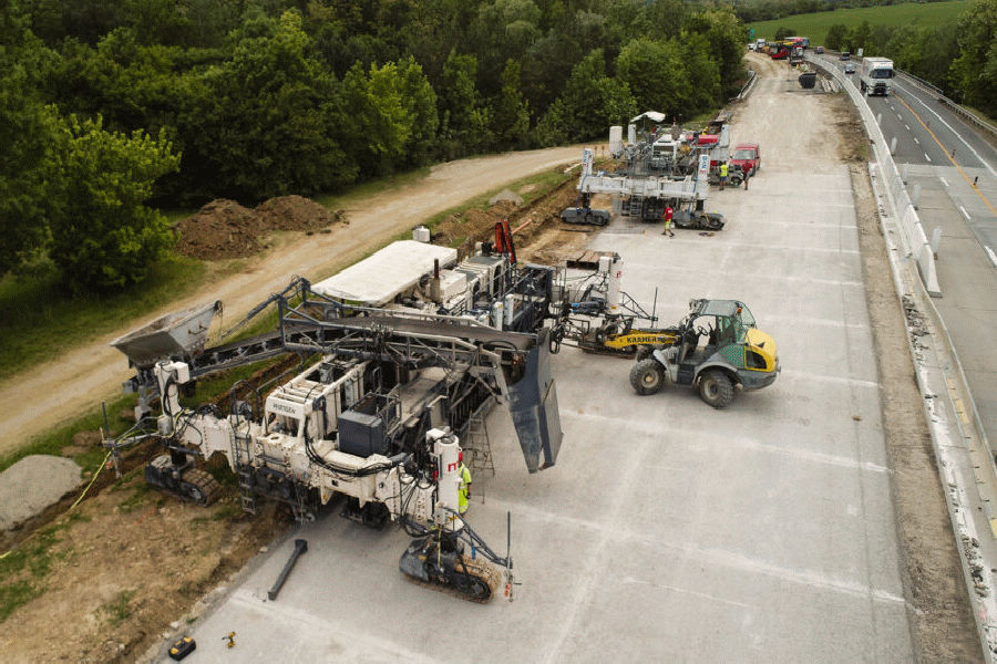 Vlivem klesajícího množství dostupných surovin pro stavbu silnic roste snaha k opětovnému využití vhodných materiálů. Řešením je vítaný trend recyklace neboli používání znovuzískaných asfaltových směsí, které pochází z frézování starých asfaltových vrstev silnic, bourání desek dopravních či jiných ploch a také původem z neshodné nebo nadbytečné výroby. Nahromaděný materiál je dále vytříděn a rozdrcen, což dává vzniknout hodnotné surovině schválené pro opětovné použití při pokládce nového koberce. V rámci modernizace dálnice D46 u Vyškova přímo na stavbě D46 se vyfrézuje 34 tisíc tun asfaltu a zpět půjde cca 15 tisíc tun. Jedná se tedy zhruba o polovinu materiálu. Dále se na stavbě vytěží 50 tisíc tun původního cemento betonového krytu a zpět se použije rozdrcený kryt ve formě betonového recyklátu různých frakcí. Ten se využívá jak do spodních stmelených vrstev, tak do aktivních zón nově budovaných objektů dálnice D46. Zpětně se tedy využije téměř 90 % betonového recyklátu.
