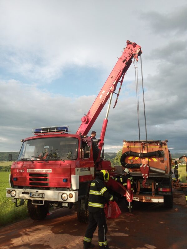 Vozidlo s nástavbou nebylo možné složit a odtáhnout, proto hasiči po dohodě se silničáři použili jeřáb k odstavení vozidla na kraj silnice a následně dočistili komunikaci. Zásah byl ukončen před 21. hodinou.