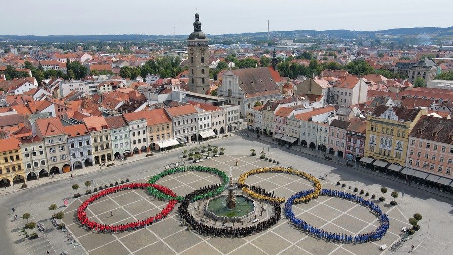 V pátek 14. června 2024 se na náměstí Přemysla Otakara v Českých Budějovicích sešlo 2 164 žáků budějovických základních škol a společně vytvořili pět olympijských kruhů. „Když jsme začali chystat Olympiádu dětí a mládeže, věděl jsem, že chci, aby vznikla nějaká symbolická fotka Budějovic spojená s touhle událostí. Tak dneska se mi to splnilo. A navíc díky tomu, že živé kruhy tvoří 2164 dětí z budějovických základních škol jsme se zapsali do České knihy rekordů,“ řekl jihočeský hejtman Martin Kuba.