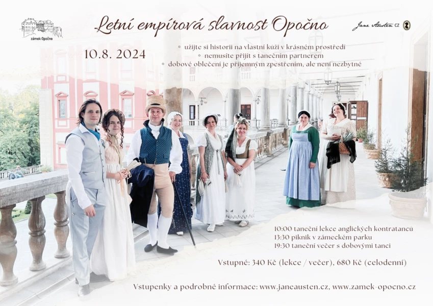 Večer vrcholí slavnostním tanečním večerem, kde se účastníci mohou ponořit do atmosféry minulého století a vyzkoušet si naučené taneční kreace. Možnost účasti je flexibilní – návštěvníci si mohou vybrat, zda se zúčastní pouze taneční lekce, večerního tanečního večera nebo si pořídí celodenní vstupenku a užijí si celý den plný dobového šarmu. Více o akci se dozvíte na webových stránkách Zámku Opočno, zarezervovat si zde můžete také vstupenky na akci.