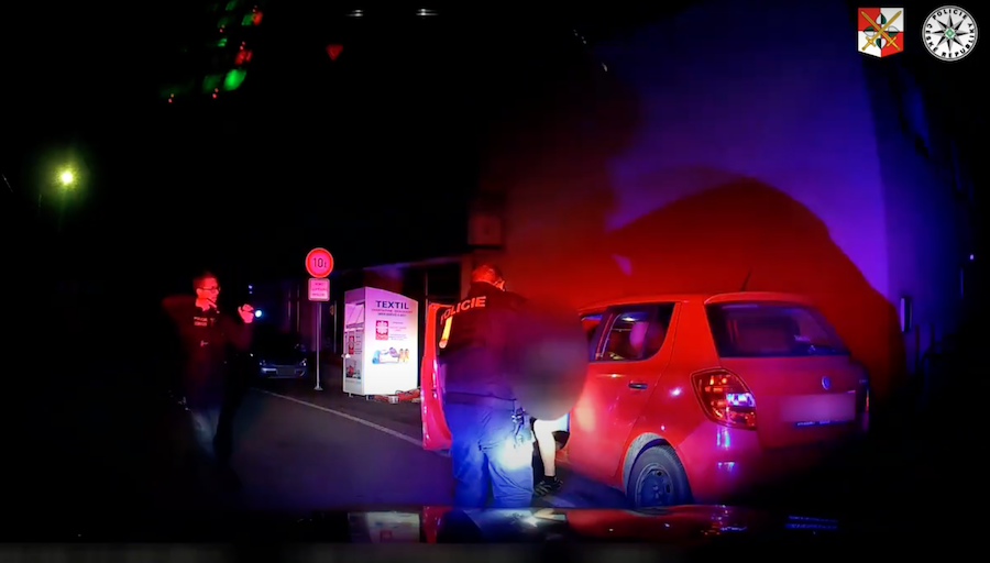 Foto Policie ČR – Jen co vylezl řidič z auta, nasadili mu policisté pouta.