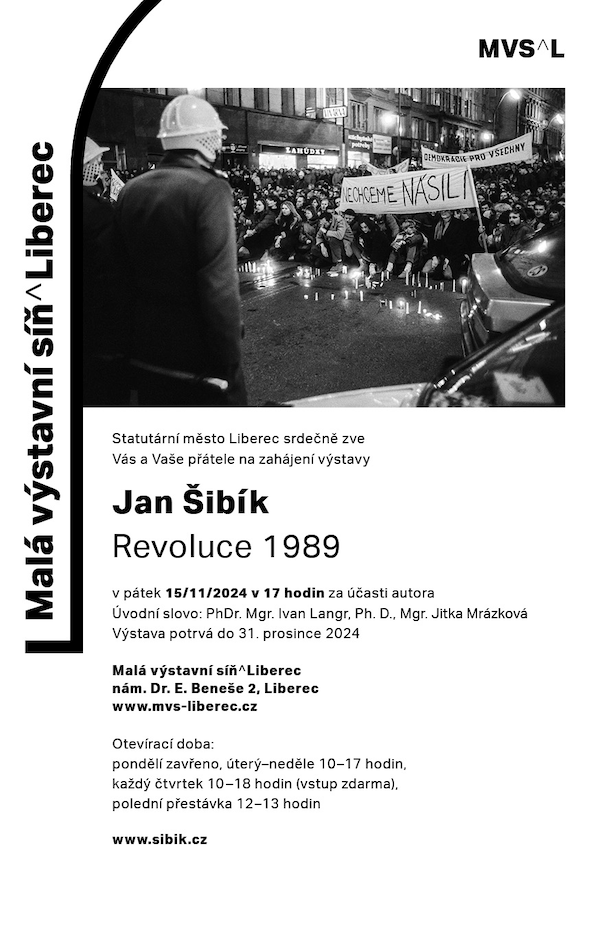 Vernisáž k výstavě proběhne v pátek 15. listopadu v 17 hodin v Malé výstavní síni Liberec. A fotograf Jan Šibík bude u toho! Zájemce zavede zpátky do roku 1989, kdy se změnilo tehdejší Československo, a prostřednictvím svých černobílých fotografií jim připomene osudové a silné chvíle, k nimž tehdy došlo.
