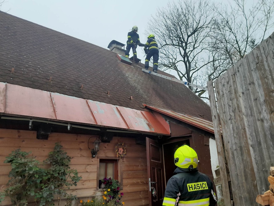 Za pomoci nastavovacích žebříků se hasiči dostali ke komínu, provedli vyčištění komínového tělesa kominickým nářadím a vybrali saze. Následně zkontrolovali komínové těleso termokamerou. Prostřednictvím svého facebookového profilu pak hasiči dodali, že se událost obešla beze škody.