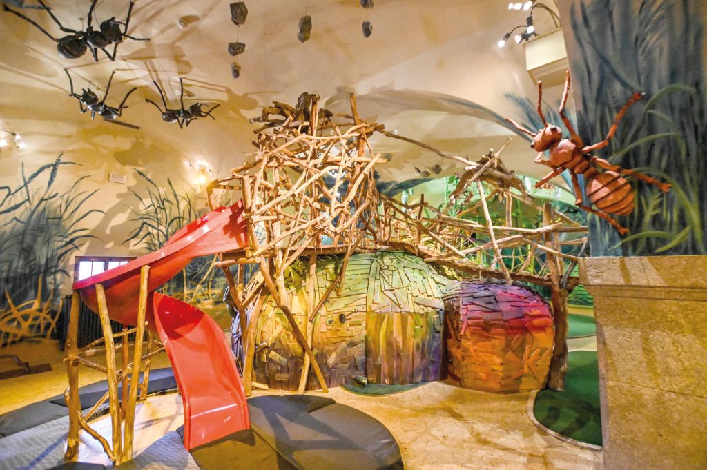 • Mraveniště: Rozsáhlá expozice, kde si děti mohou vyzkoušet, jaké to je být mravencem. Součástí jsou spletité tunely, které děti prozkoumávají, což podporuje jejich pohybovou aktivitu a týmovou spolupráci.