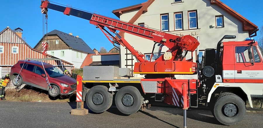 Mercedes na Jablonecku skončil ve stráni. Pomoc pasažérům přivolal systém eCall