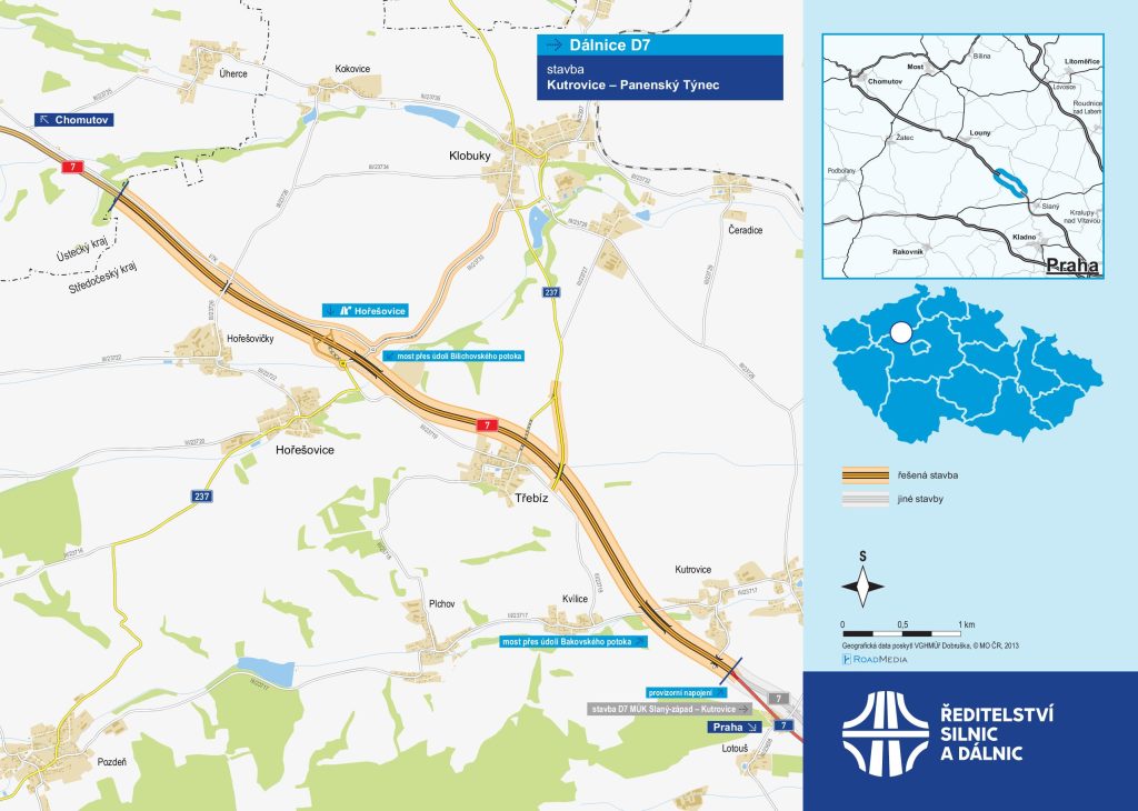 KUTROVICE – Ředitelství silnic a dálnic zahájilo stavbu nového úseku dálnice D7 mezi Kutrovicemi a Panenským Týncem ve Středočeském kraji. Na 6,8 kilometru dlouhé trase se bude pracovat dva a půl roku. Hlavním cílem je přeměnit stávající silnici I/7 na plnohodnotnou čtyřproudou dálnici. Už příští týden pak začne stavba posledního středočeského úseku mezi Knovízí a Slaným.
