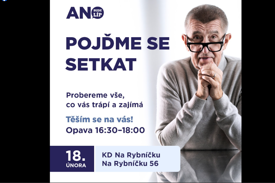 Politik se s opavskými setká v Kulturním domě na Rybníčku v úterý 18. února od 16:30 do 18:00. Babiš slibuje, že s lidmi probere vše, co je trápí a zajímá.