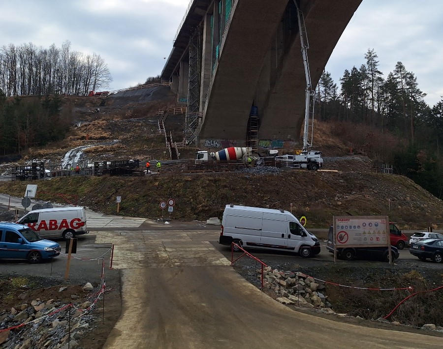 Ani zimní mrazy nezastavily práce na této monumentální stavbě, která dosahuje výšky osmipatrového domu. Nejvyšší prioritou je teď výměna opotřebovaných částí konstrukce – stojek, jež propojují oblouk mostu s jeho svrchní částí, která nese vozovku. Celkem se vymění 32 stojek, rovnoměrně po obou stranách. Tato časově i technicky náročná operace začala už loni v létě a nyní je hotovo zhruba 85 %. Každá stojka je z armovaného betonu a aktuálně probíhá betonáž nových prvků. Na celý proces padne přibližně 600 kubíků betonu. Aby se kvalita betonáže nezhoršila kvůli nízkým teplotám, jsou pracovní prostory zakryté plachtami a vytápěné elektrickými a naftovými topidly. Nové stojky vznikají vedle stávajících, které se odstraní až po jejich dokončení – stejný postup se uplatní i při výměně mostních pilířů. Na stavbě denně pracuje kolem 30 dělníků.