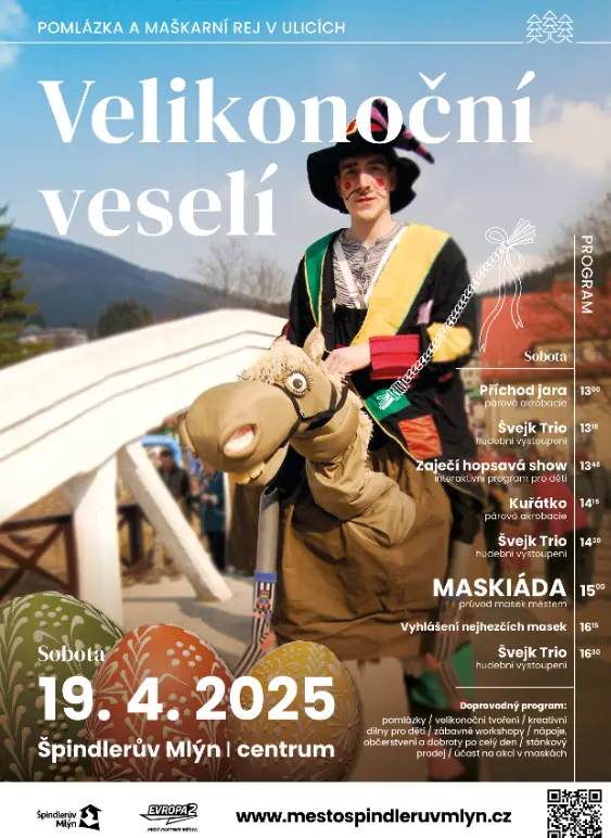 Hudební vložku si návštěvníci budou moci vychutnat znovu i po 14. hodině, kdy se znovu navrátí Švejk Trio. Ve 15:00 pak přijde zlatý hřeb odpoledne – MASKIÁDA. Průvod masek projde centrem města a nabídne přehlídku fantazie a kreativity. A protože každá správná maska si zaslouží odměnu, v 16:15 proběhne slavnostní vyhlášení nejhezčích převleků.