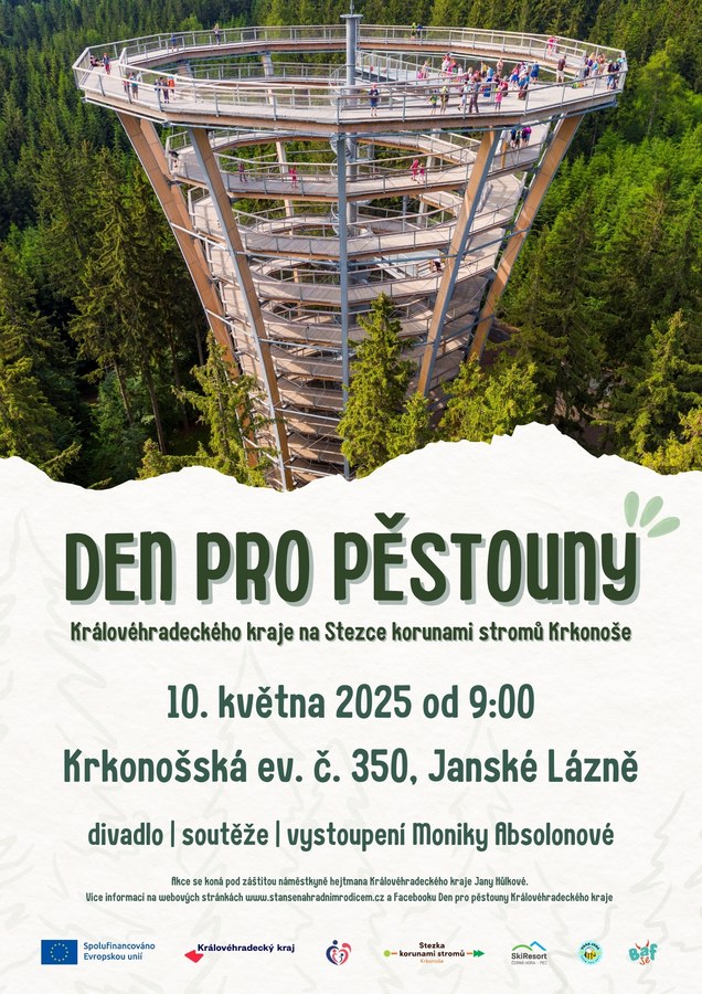 Rodinné setkání, které vzniká ve spolupráci se Stezkou korunami stromů Krkonoše, nabídne pestrý program plný zážitků. Prohlídka stezky zavede účastníky vysoko do korun stromů, kde je čekají interaktivní stanoviště, divadelní představení, tvořivé dílny i odpočinková zóna. Vyvrcholením dne pak bude koncert zpěvačky Moniky Absolonové.