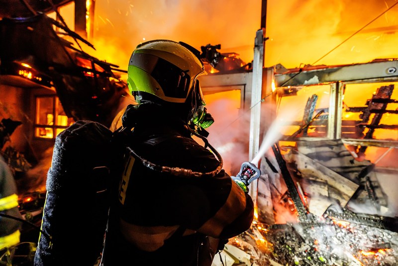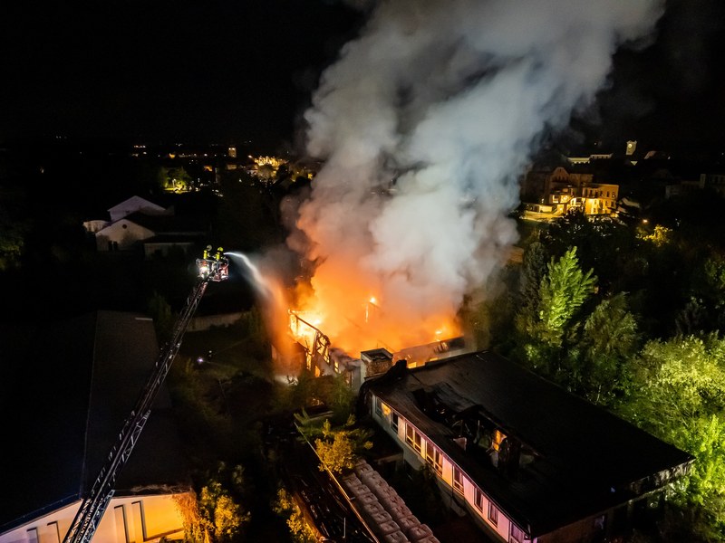 Budova o rozměrech přibližně 45 × 15 metrů byla při příjezdu hasičů z poloviny zcela pohlcena plameny. Hasiči museli nasadit několik vodních proudů, přičemž hašení probíhalo i za pomoci výškové techniky. Díky rychlému a koordinovanému zásahu se podařilo zabránit dalšímu šíření požáru na okolní objekty.
