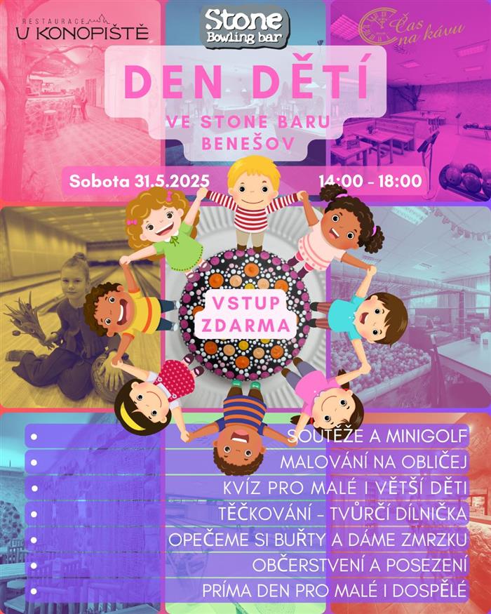 Pokračování dobré zábavy přijde v sobotu 31. května 2025 v benešovském Stone Baru od 14:00 hodin. Zatímco v pátek budou z pohádky do pohádky putovat jenom děti, na tuhle akci určitě vezměte s sebou celou rodinu, protože vstup je zdarma a všichni si zde přijdou na své. Děti si vyzkouší vědomostní kvíz, zasoutěží si a zahrají minigolf. Svůj tvůrčí talent projeví v kreativních dílničkách včetně té tečkovací, nebo si mohou nechat zkrášlit obličej obrázkem a proměnit se v někoho úplně jiného. Uspokojí tu i jejich mlsné jazýčky, budou se totiž opékat buřty a podávat zmrzlina. A co je důležité, zatímco děti budou řádit, dospělé čeká vytoužený odpočinek u občerstvení v příjemném prostředí. To si za celý rok plný starostí o děti rozhodně zaslouží.