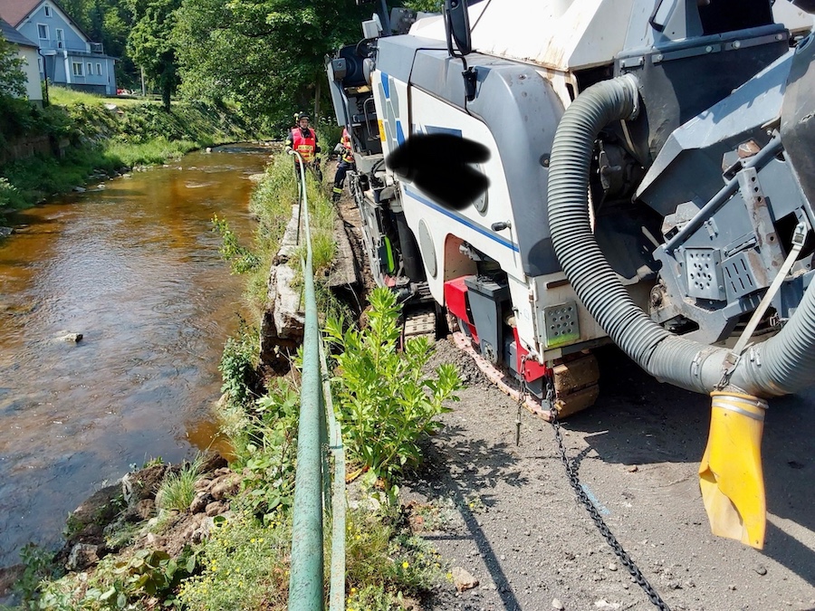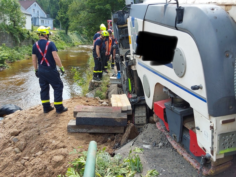 Hasiči na místo vyrazili krátce před jedenáctou hodinou dopoledne. „Velitel zásahu si na místo povolal technický kontejner ze stanice Liberec vybavený prostředky pro stabilizaci. Hasičům se pomocí vytvořené dřevěné konstrukce podařilo frézu podepřít a stabilizovat a následně beze škody vyprostit zpět na komunikaci před 15. hodinou,“ informovala o zásahu tisková mluvčí hasičů Jaroslava Benešová.