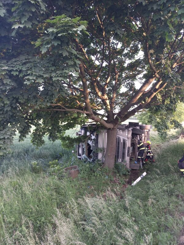 RYCHNOVSKO – Vážná dopravní nehoda zaměstnala ve středu 4. června hned několik složek integrovaného záchranného systému. Krátce po šesté hodině ranní sjel na silnici I/14 u obce Lipovka nákladní vůz mimo vozovku, převrátil se na bok a kabinou narazil do stromu. Nehoda se neobešla bez ekologických dopadů – kamion převážel vodou ředitelné barvy, které se částečně vylily do okolí.