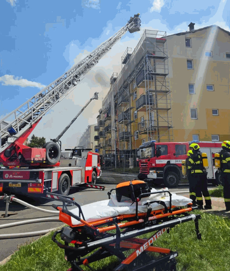Na místě zasahovalo přes 130 hasičů z 25 jednotek. První hasiči do Chrlic dorazili už kolem druhé hodiny odpoledne. Operační středisko záchranářů na místo vyslalo šest prostředků, jeden lékařský tým, tři záchranářské posádky, inspektora provozu a velkokapacitní sanitku kvůli předpokladu většího počtu pacientů. Zranili se tři lidé. „Zkontrolovali jsme všechny evakuované osoby, byly v pořádku. V péči jsme měli dva hasiče, jeden se nadýchal zplodin hoření, druhý zkolaboval a také si poranil ruku. Oba muže jsme po ošetření převezli k další péči do nemocnice.” uvedla mluvčí záchranářů Michaela Bothová. Na místě zůstal inspektor provozu, velkokapacitní sanitka a jedna záchranářská posádka z preventivních důvodů a především jako podpora hasičů, protože šlo o velmi náročný zásah. V případě potřeby byli připraveni pomoci. Požár hasiči zlikvidovali před osmou hodinou večer. „Dům se dvěma vchody je momentálně neobyvatelný. Škoda bude vysoká,“ sdělil mluvčí hasičů Jaroslav Mikoška. Co se týká příčiny vzniku požáru, vyšetřovatel pracuje s verzí nedbalosti během rekonstrukce na střeše objektu.
