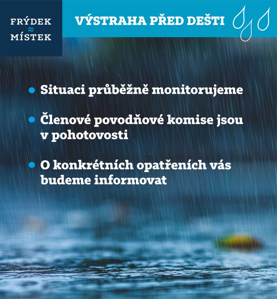 Komise zasedla v úterý 8. července po poledni na pokyn primátora Korče a pod jeho vedením povodňová komise, předvoj krizového štábu, která zajistila připravenost města a všech zainteresovaných složek v souvislosti s výstrahami Českého hydrometeorologického ústavu na extrémní déšť. „Primátor situaci již zkraje týdne projednal s náměstkem, který má v gesci prevenci kriminality a bezpečnost a požární ochranu, Lukášem Kmecem který je zároveň členem sboru dobrovolných hasičů Frýdek. Město také sleduje aktuální informace z ústřední povodňové komise, která zasedla dnes v Ostravě,“ doplnila mluvčí Musálková Jeckelová. V pozoru jsou dotčené odbory – bezpečnosti a prevence kriminality, odbor životního prostředí a zemědělství, odbor dopravy, také TS a.s., městská policie. Radnice komunikuje s Povodím Odry, Krajským úřadem, s hasiči a s ostatními bezpečnostními sbory.