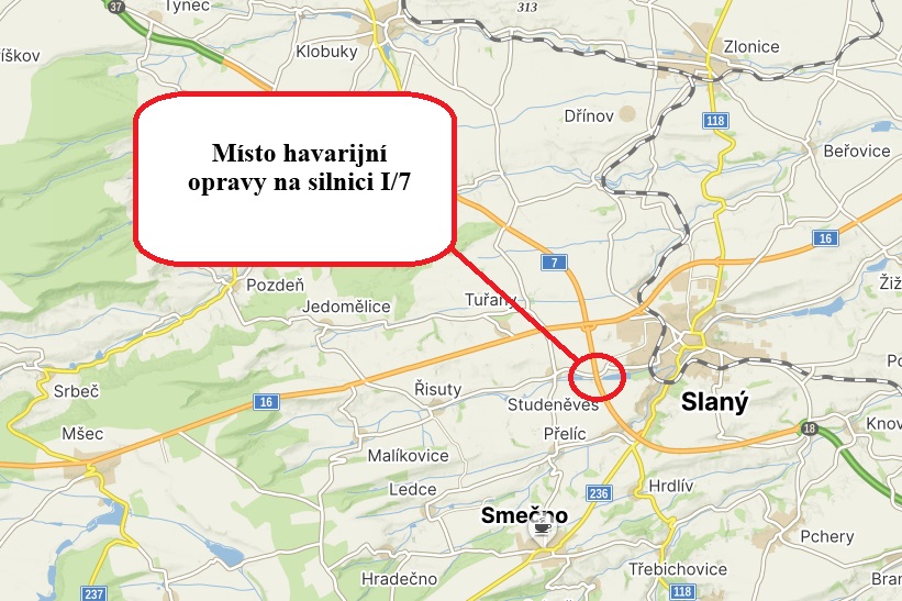 Výměna mostních závěrů se týká mostu evidenčního čísla 7-020, který převádí I/7 přes místní komunikaci spojující Slaný a Studeněves. Technici Ředitelství silnic a dálnic při mimořádné prohlídce zjistili, že stav závěrů je natolik špatný, že oprava nemůže čekat. „Mostní závěry jsou ve velmi opotřebovaném stavu a jejich okamžitá výměna je nezbytná kvůli zajištění bezpečnosti provozu,“ uvedl mluvčí ŘSD Jiří Veselý. Podle něj byly práce naplánovány tak, aby zasáhly do provozu co nejméně – budou probíhat pouze čtyři dny.