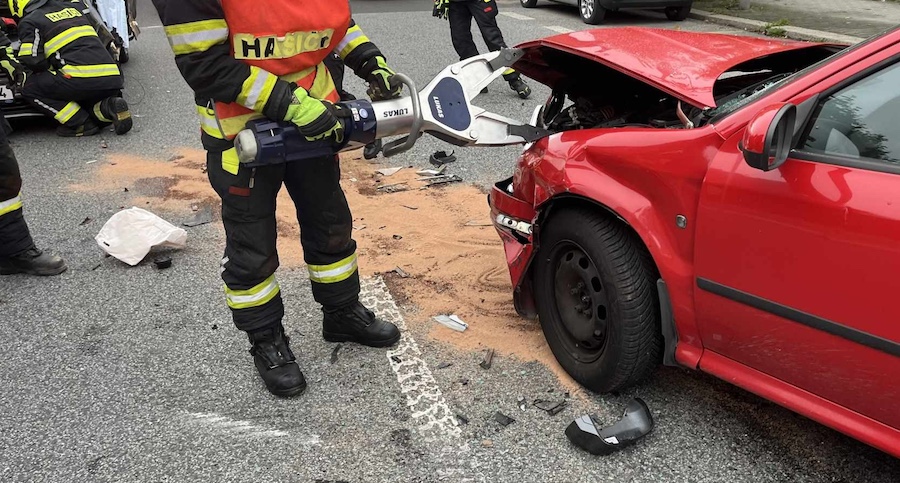 LIBEREC – Dopravní nehoda dvou osobních aut zkomplikovala v úterý 5. srpna ráno dopravu v Zhořelecké ulici v Liberci. Jeden z vozů skončil po nárazu s poškozenou přední částí a zaklíněnou řidičkou uvnitř. Profesionální hasiči ji museli vyprostit pomocí hydraulického zařízení a předat do péče záchranářů. Nehoda si vyžádala dvě zranění.
