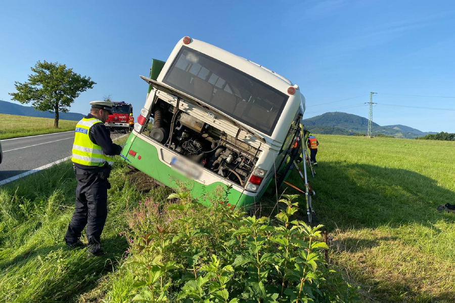Čtyři jednotky hasičů vyjely k dopravní nehodě. Informaci o nehodě autobusu obdrželo operační středisko hasičů ve čtvrtek 7. srpna v 6:16. Společně s jednotkami z Kopřivnice a Nového Jičína vyrazily k místu také dobrovolné jednotky města Kopřivnice a Frenštátu pod Radhoštěm. „Po příjezdu provedli hasiči na havarovaném autobuse protipožární opatření. Vyproštění pěti cestujících nebylo nutné, protože autobus opustili zadními dveřmi. Řidiče kolegové vyprostili společně s Policií České republiky a zdravotnickou záchrannou službou, v jejíž péči následně zůstal,“ sdělila mluvčí hasičů Kamila Langerová. Vzhledem k tomu, že byl autobus po sjetí ze silnice nebezpečně nakloněný, zajistili jej hasiči pomocí stabilizačních tyčí a navijáku. O jeho vyproštění zpět na silnici se postarala specializovaná firma.