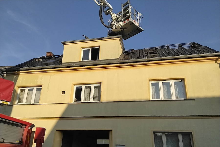 Hasiči vyjížděli k požáru střechy domu v Žandově v neděli 10. srpna kolem 17. hodiny odpoledne. Na místo události Krajské operační a informační středisko HZS Libereckého kraje vyslalo jednotky profesionálních i dobrovolných hasičů z Českolipska (HZS LBK CHS Česká Lípa a JSDHO Žandov, Volfartice, Kravaře, Stružnice, Česká Lípa, Kamenický Šenov) a v rámci mezikrajské výpomoci byla povolána také jednotka HZS Ústeckého kraje ze stanice Česká Kamenice. „Při příjezdu první jednotky na místo se již v domě žádná osoba nenacházela, nikdo nebyl zraněn. Požárem byla zasažena značná část konstrukce střechy,“ popsala tisková mluvčí hasičů Jaroslava Benešová.
