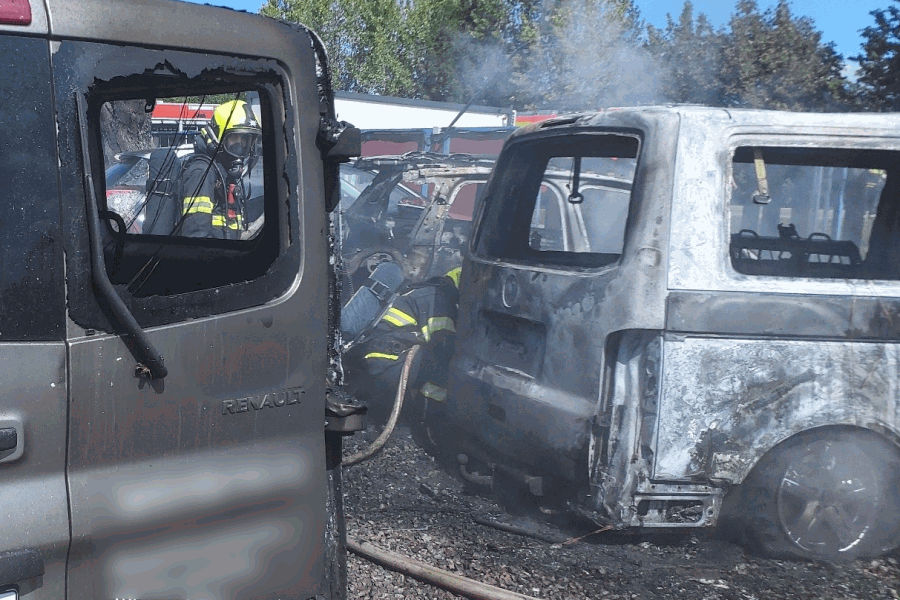 V neděli krátce po půl dvanácté vyjížděli hasiči k požáru vozidel na ulici Řipská v brněnské městské části Slatina. Na místě byli v 11.40 hodin. Proti plamenům nasadili tři vodní proudy a požár měli pod kontrolou za třináct minut. Úplnou likvidaci plamenů nahlásil velitel zásahu za hodinu od příjezdu. Zásah jsme ukončili ve třináct hodin. Po požáru dvou osobních aut a dvou dodávkových vozidel je předběžná škoda vyčíslena na 1,5 milionu korun. Našim zásahem se podařilo uchránit majetek v hodnotě dalších tří milionů korun. Pravděpodobnou příčinou vzniku požáru je závada na elektroinstalaci jednoho z vozidel,” uvedl mluvčí hasičů Jan Dvořák.
