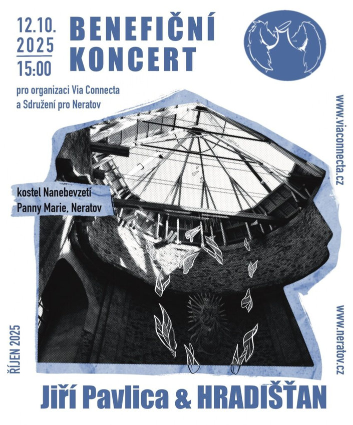 RYCHNOVSKO – V neděli 12. října 2025 ožije kostel Nanebevzetí Panny Marie v Neratově výjimečným benefičním koncertem. Od 15 hodin zde vystoupí známé hudební seskupení Hradišťan & Jiří Pavlica, které si získalo srdce posluchačů po celé republice svou originální tvorbou propojující folklór, duchovní motivy a současnou hudbu.