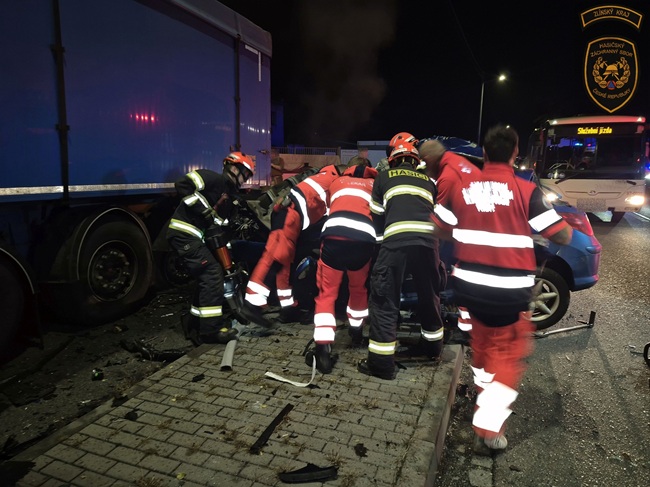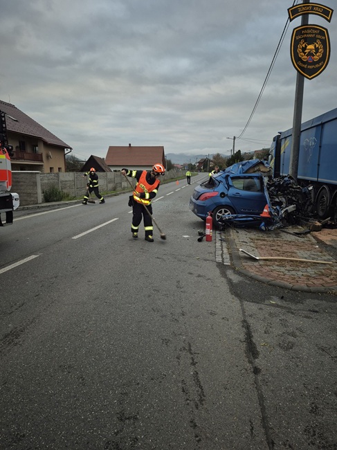 Dvaadvacetiletý řidič Peugeotu havaroval v neděli krátce před šestou hodinou při jízdě od Vsetína v obci Hovězí do zaparkovaného nákladního auta. „Po příjezdu na místo hasiči vyprostili vážně zraněnou osobu z vozidla, a to ve spolupráci se zdravotnickou záchrannou službou. Po vytažení z vraku vozidla hasiči dále asistovali při ošetřování a transportu zraněného až do vrtulníku letecké záchranné služby,“ vylíčila mluvčí hasičů Lucie Javoříková.