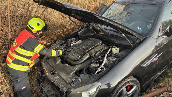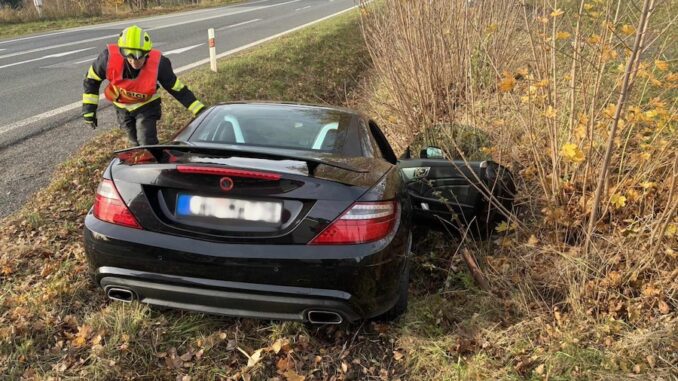 Mercedes na Jablonecku skončil ve stráni. Pomoc pasažérům přivolal systém eCall