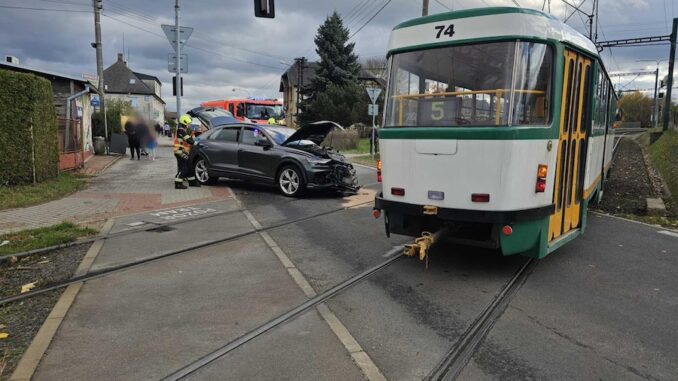 Foto HZS Libereckého kraje – Dopravní nehoda osobního automobilu a tramvaje se obešla bez zranění.