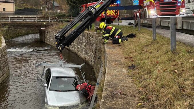 JABLONECKO – Ranní jízda skončila v řece. V Proseči nad Nisou na Jablonecku sjel v úterý 11. listopadu osobní automobil z vozovky a skončil v korytě Lužické Nisy. Řidič měl obrovské štěstí – z vozu se dostal sám a bez zranění. Hasiči museli automobil z vody vyprostit pomocí speciální techniky a zároveň zabránit úniku provozních kapalin do okolí.
