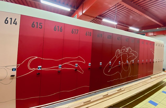Výměny se dočkají jak pánské, tak dámské skříňky. Nové provedení pracuje s výraznou, ale funkční barevností: pánská část je laděna do modrých odstínů, dámská část přechází od béžové do několika odstínů červené. „Skříňky jsou usazené na stávajících zděných podstavcích s ocelovými konstrukcemi, které firma kompletně zrenovuje. Sedací části laviček, dosud tvořené ocelovými profily, nahradí nové dřevěné latě, které zvýší komfort i estetickou kvalitu prostoru. Součástí plnění byla také odborná demontáž původních skříněk, kabeláže, laviček, které by bránily instalaci nových a také nový odbavovací systém,“ zakončil jednatel SAREZA Jaroslav Kovář.