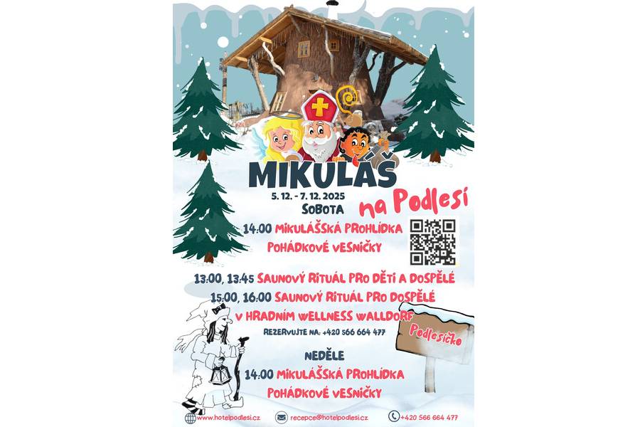 Resort Podlesí tak zve všechny, kteří si chtějí užít pohodový a kouzelnou atmosférou nabitý víkend. Pohádky, mikulášská nadílka, teplo sauny a krásné prostředí jsou ideální kombinaci pro příjemné předvánoční zastavení, které potěší celou rodinu.
