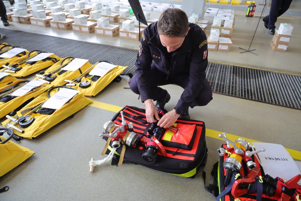 Hasiči dostali 8 sad hadic pro hydraulické vyprošťování, 440 přileb pro technické zásahy, 188 ochranných masek a 752 filtrů pro hašení lesních požárů. Dále obdrželi 44 zádových hasicích vaků, 3 batohy pro hašení lesních požárů, 29 sad výstražných LED světel a 29 sad bezpečnostních zásuvek pro elektro vozidla.