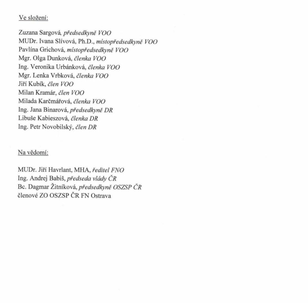 Odborový svaz v dopise ministrovi zmiňuje, že nemocnice se za vedení současného ředitele rozvíjí, posunul komunikaci se zaměstnanci, či aktivně budoval spolupráci s Lékařskou fakultou Ostravské univerzity. Dopis svaz ministrovi odeslal 22. ledna.